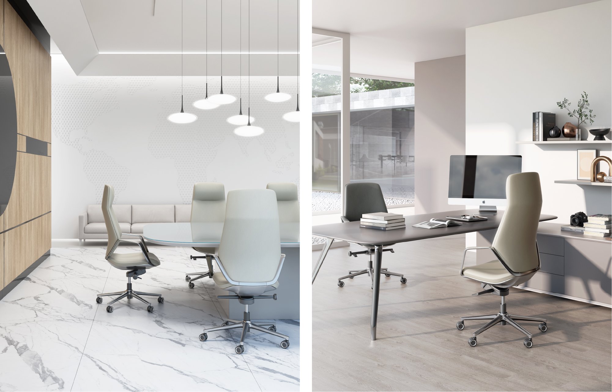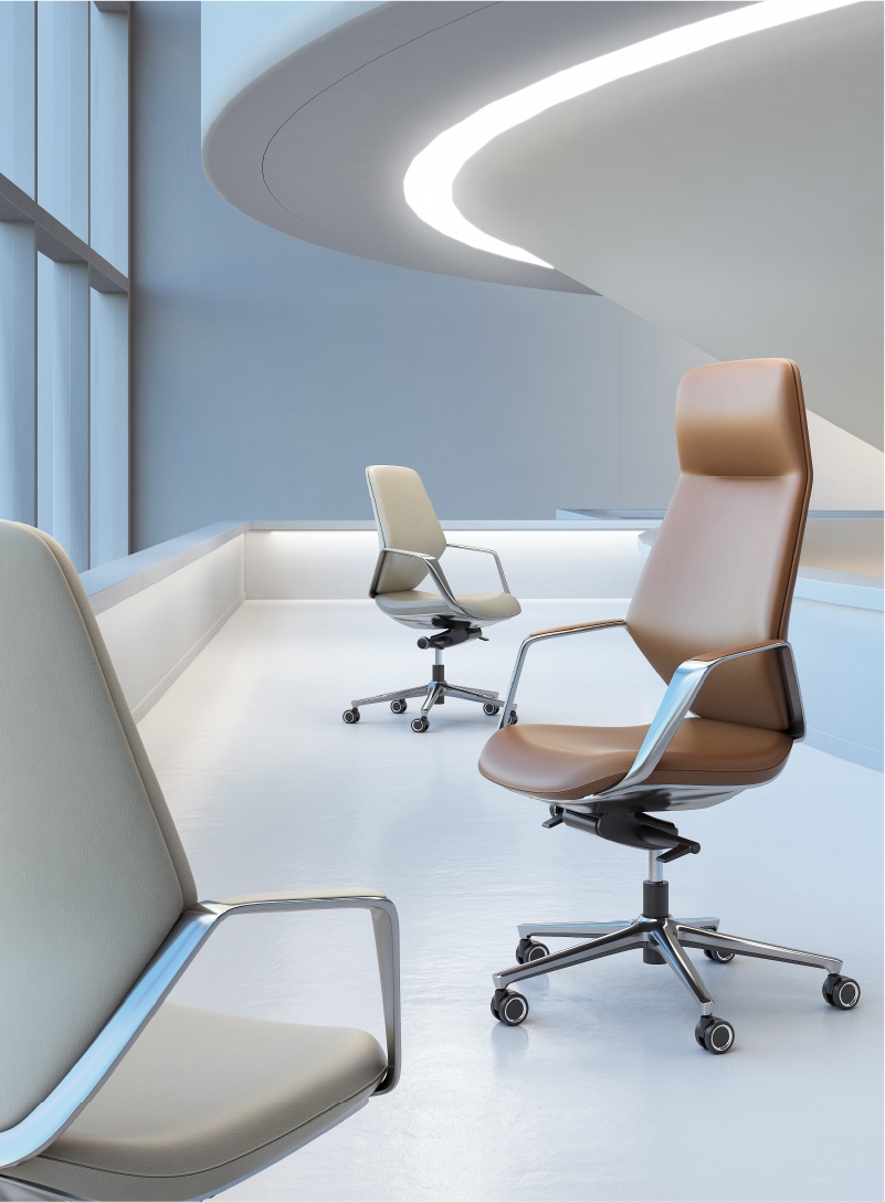 将利落简洁的线条与优质工艺相结合,打造一款简洁, 极富都市时尚感的现代高 管皮椅。纤薄的边型,极简的轮廓,摈弃传统皮椅的厚重与呆板,为空间增添一 份优雅气息。